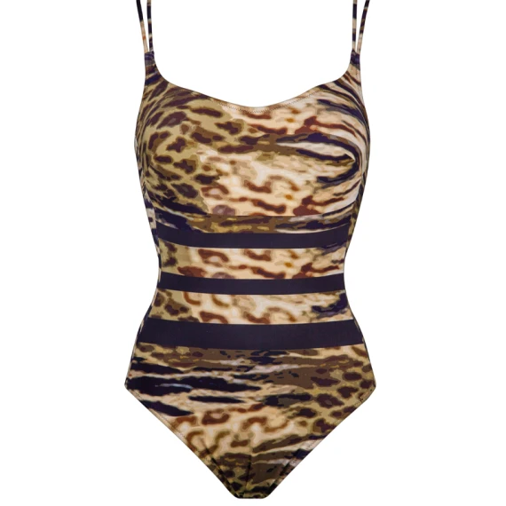 Der Edge Bügelbadeanzug von Maryan Mehlhorn ist in der Farbe Tiger Camo erhältlich. Dieser Badeanzug hat einen trendigen Leopardenprint auf einem Camouflage-Hintergrund. Dieser Badeanzug ist leicht korrigierend und hat einen eingebauten Bügel für optimalen Komfort und eine schöne Form der Busen. Der Badeanzug hat einen niedrigen V-Ausschnitt am Rücken.