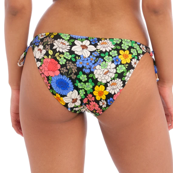 Die Floral Hazes Bikini Hose mit seitlichen Bändern von Freya Bademode ist in der Farbe Multi erhältlich. Diese Bikini Hose hat einen schönen Retro-Blumenprint mit Ozeanblau, Kirschrot und Sonnengelb vor einem kontrastreichen schwarzen Hintergrund. Kombinieren Sie dazu eines der passenden Bikini Oberteile für einen kompletten Look. Schon der Anblick der Floral Haze-Kollektion macht Lust auf den Sommer!