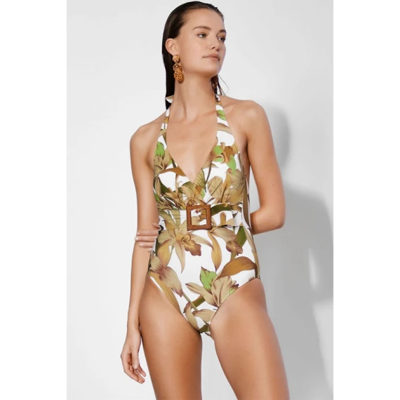 Dieser vorgeformte Triangel Badeanzug aus der Journey Kollektion ist in der Farbe Cream Reed gehalten. Dieser Druck macht Lust auf Sommer. Der Badeanzug hat einen V-Ausschnitt und ein tief ausgeschnittenes Dekolletee.