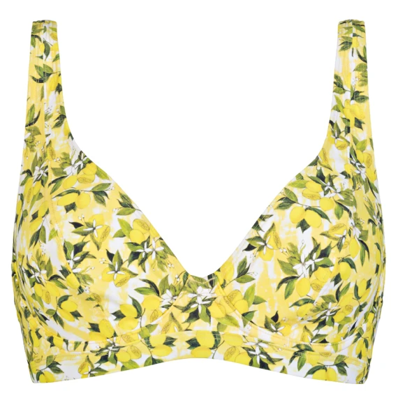 Das Lemonade Plunge Bikini Oberteil von Annadiva Swim ist in der Farbe Citron erhältlich. Dieses gelbe Bikini Oberteil mit fröhlichem Zitronen-Print verleiht Ihnen sofort Sommerfeeling! Das plunge Modell schafft ein tiefes Dekolleté und der Bügel hebt und zentriert Ihren Busen für eine schöne runde Form. Sie müssen sich also keine Gedanken über Festigkeit und Tragekomfort machen. Die Lemonade Kollektion von Annadiva Swim ist trendy und fröhlich!