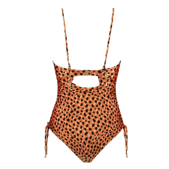 Der Leopard Spots Badeanzug von Beachlife ist in einem verspielten Leoparden Muster erhältlich. Dieser Badeanzug hat weiche Cups und einen versteckten Bügel für zusätzlichen Halt. Der Badeanzug kann mit geraden Trägern, trägerlos und als Neckholder getragen werden. Die Schleifen an beiden Seiten lassen sich straff ziehen, wodurch sich der Po erhöht und die Beine länger wirken. Kombinieren Sie den Badeanzug mit den Accessoires aus der Serie Leopard Spots. For those wild at heart!