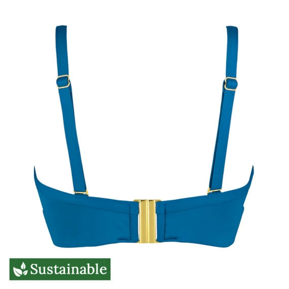Das Ocean Blue Longline Bikini Oberteil von Annadiva Swim ist in der Farbe Petrol erhältlich. Vamos a la playa in dieser trendigen Petrolfarbe! Tauchen Sie ins Meer ein und lassen Sie sich von den Wellen auf eine einsame Insel tragen. Die festen, vorgeformten Cups heben und zentrieren Ihren Busen schön nach vorne. Dieses Oberteil hat eine schöne Longline-Form. Supertrendy! Kombinieren Sie das Bikini Oberteil mit einem der Ocean Blue Bikini Hosen. Für lauwarme Sommertage. Nothing but blue skies!