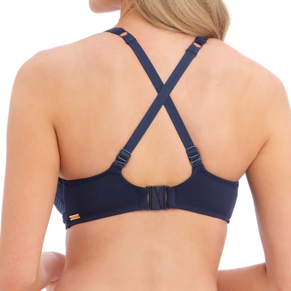 Das Ottawa Plunge Bikini Oberteil von Fantasie Swim ist in der Farbe Ink erhältlich. Der Stoff dieses modischen Bikini Oberteils hat ein schönes Muster. Zwischen den Cups befindet sich ein netter Twist.