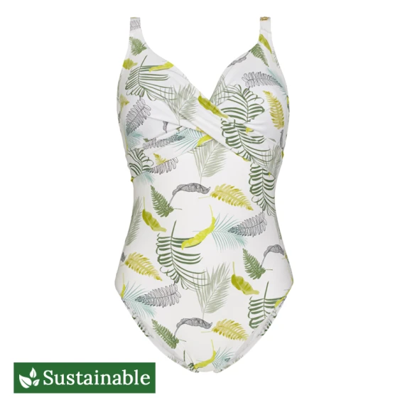 Der Palmeira Badeanzug von Annadiva Swim ist in der Farbe White erhältlich. Dieser weiße Badeanzug hat einen frischen Palmen-Print. Diese Serie entführt Sie auf eine einsame Insel mit Palmen. Die gepolsterten Cups geben Ihrem Busen eine schöne runde Form. Der Badeanzug ist an den Beinen etwas höher geschnitten, was für eine gute Passform sorgt. Kombinieren Sie den Badeanzug mit einem der Accessoires für den perfekten Sommer-Look. Like a paradise beach!