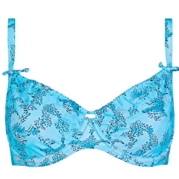 Das Safari Bügel Bikini Oberteil von Annadiva Swim ist in der Farbe Azul erhältlich. Dieses Bikini Oberteil hat ein verspieltes Tier Motiv auf einem schönen türkisfarbenen Hintergrund. Die Bügel des Oberteils heben und zentrieren Ihren Busen für eine schöne, volle Form. Die Schleifen an der Oberseite der Cups können nach Belieben gebunden werden. Lassen Sie sich von der Safari Kollektion an einen warmen Strandtag entführen.