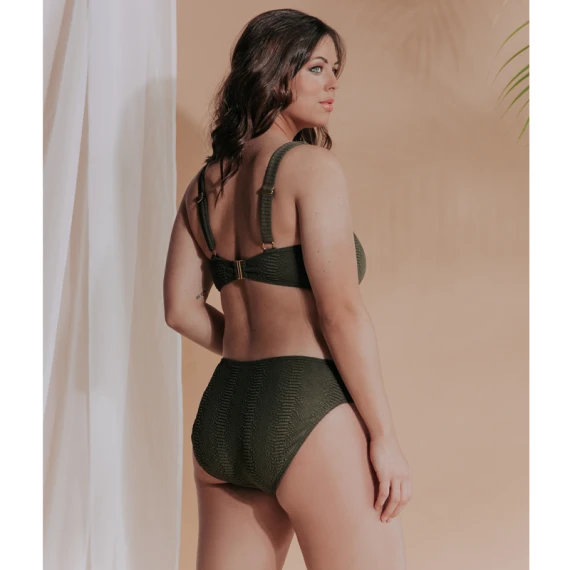 Das Snake Bralette Bikini Oberteil von Annadiva Swim ist in der Farbe Olive erhältlich. Dieses olivgrüne Bikini Oberteil hat einen luxuriösen, strukturierten Stoff, der sich weich auf der Haut anfühlt. Die Bügel gebent dem Oberteil die zusätzliche Unterstützung, die Ihren Bikini den ganzen Tag über anhält. Setzen Sie auf einen endlosen Sommer mit der Snake Kollektion. Kombinieren Sie das Oberteil mit einem der Unterteile für einen coolen und dennoch sexy Look!