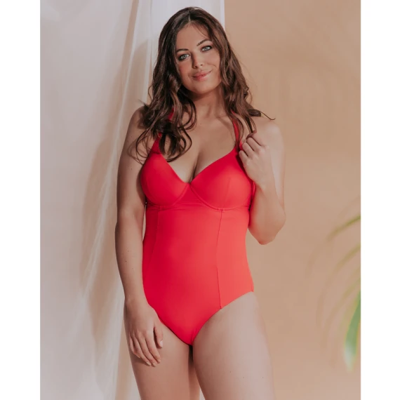 Der Solid Badeanzug von Annadiva Swim ist in der Farbe Coral erhältlich. Dieser Badeanzug hat eine schöne Korall-Farbe, die zu jedem Hautton passt. Die komfortablen Mousse-Cups zentrieren schön den Busen. Der Badeanzug verfügt über Bügel, so dass Ihr Busen genügend Halt bekommt und dank des schönen V-Ausschnitts ein zauberhaftes Dekolleté entsteht. Kombinieren Sie den Badeanzug mit den Shorts für den perfekten Sommer Look. Solid schmeichelt jeder Haut!