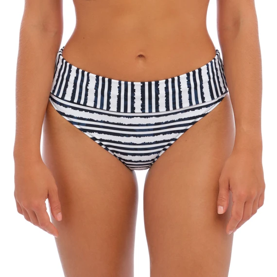 Die Sunshine Coast Bikini Hose mit Umschlag von Fantasie Bademode ist in der Farbe French Navy erhältlich. Nautische Motive sind immer im Trend! Der gefaltete Stoff sorgt für ein zusätzliches verspieltes Detail, so dass Sie entscheiden können, wie hoch oder niedrig Sie die Bikini Hose tragen möchten. Kombinieren Sie das Set mit dem Bandeau Bikinitop.