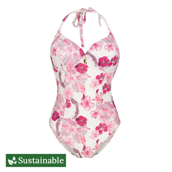 Der Tropics Badeanzug von Annadiva Swim ist in der Farbe Ecru erhältlich. In diesem Blumenmuster fühlen Sie sich ganz Frau. Träumen Sie am Strand, während Sie den Sonnenuntergang beobachten. Fröhlich und romantisch zugleich. Die bequemen Mousse-Körbchen zentrieren den Busen wunderbar. Der Badeanzug hat einen Bügel, so dass Ihr Busen genügend Halt bekommt und dank des schönen V-Ausschnitts ein schönes Dekolleté entsteht. Kombinieren Sie den Badeanzug mit einem der Accessoires. Flower bombshell!